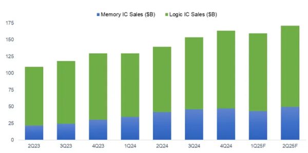 Global IC sales by quarter 2Q23 to 2Q25. Source: SEMI and TechInsights
