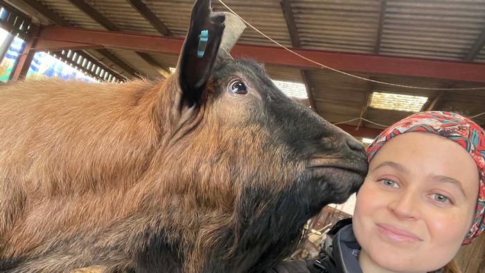 Dr Holly Vickery with one of the goats in the trial Courtesy of Harper Adams University